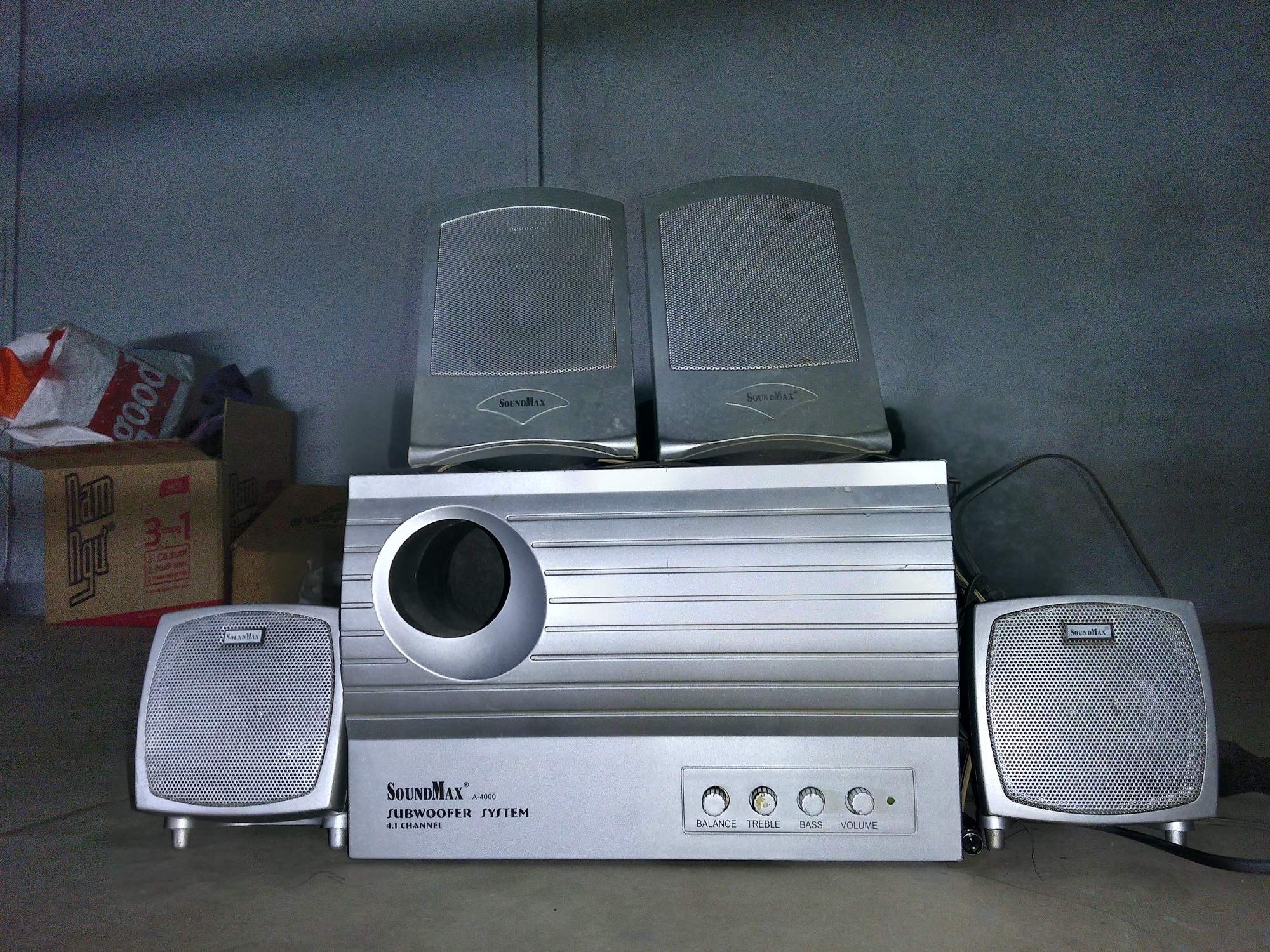 Bass đánh rất chắc, mạnh và êm _treble thì cực nét, trong suốt và mềm mại _4 loa vệ tinh, 2 front + 2 surround _4 Controls điều khiển Volume rất to, thỏa sức tận hưởng âm thanh