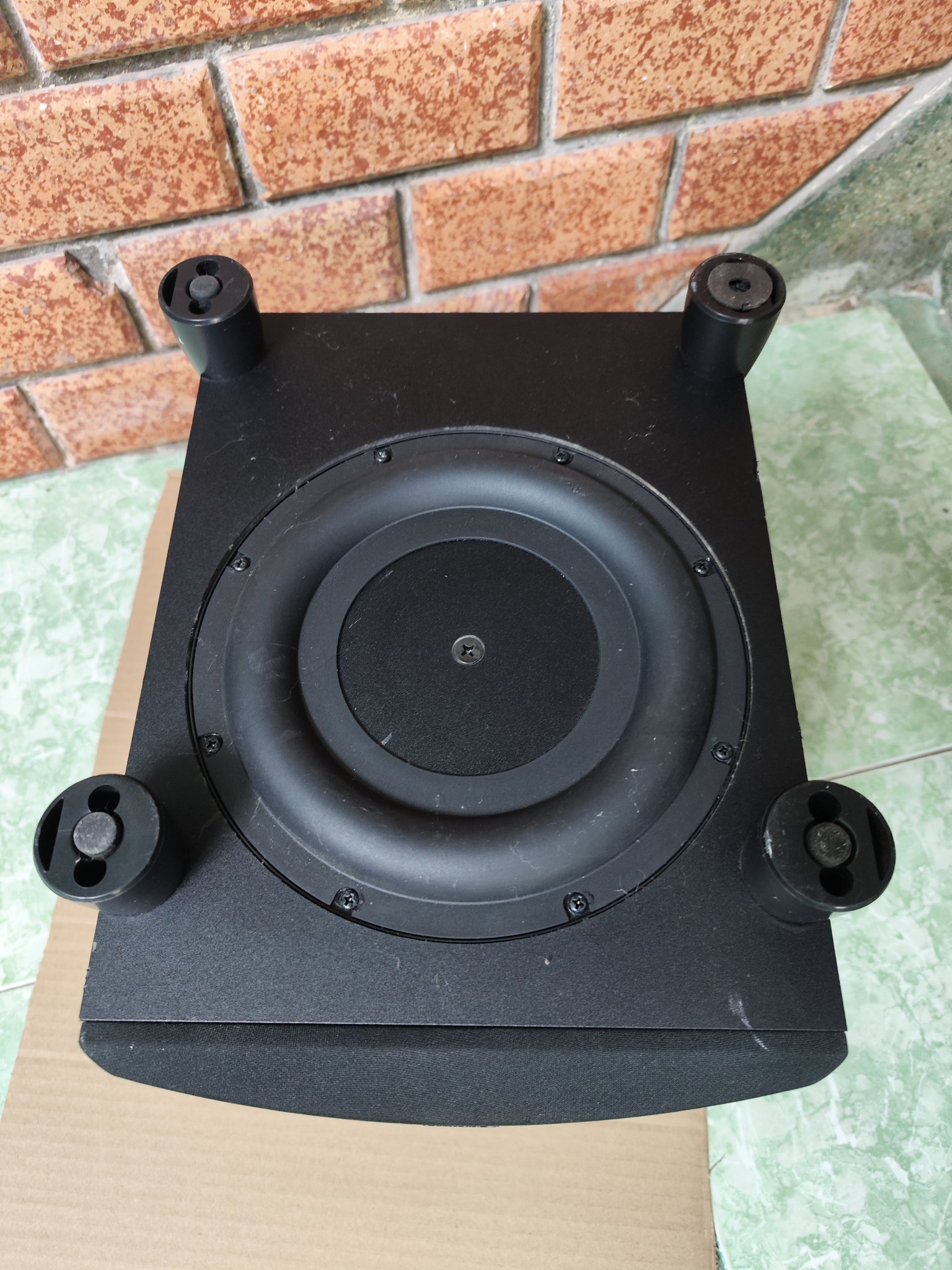 Bub điện thương hiệu Mỹ Definity Technology Pro Sub 600 với kích thước nhỏ gọn nhưng đầy uy lực, sở hữu 2 bass 20cm (1 trước và 1 úp đất), có jack bắp chuối in out và chỉnh tần số phù hợp cả amply ko có cổng sub out, có volume rời, sub xuất Mỹ điện thế 120v công suất 375w.