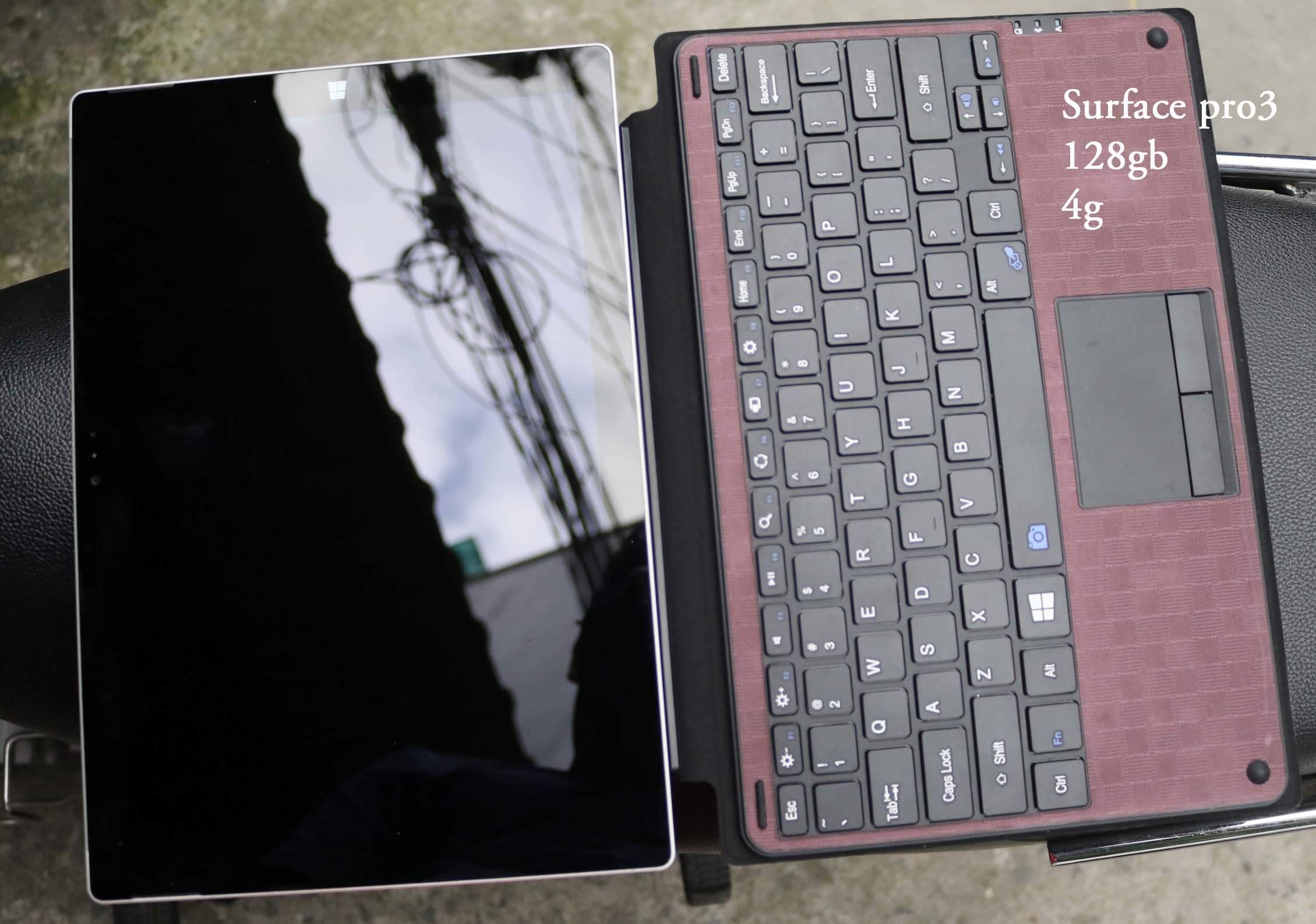 Bán cây Surface Pro 3 hàng ship USA, máy đẹp chức năng hoàn hảo không lỗi, cảm ứng mượt mà. Cấu hình SSD 128Gb, ram 4GB, core i5 Phụ kiện: chỉ bàn phím ko sạc. Giá 10tr8 Địa chỉ 45/18/32E Tân Trụ, p15, Tân Bình 093.384.3950