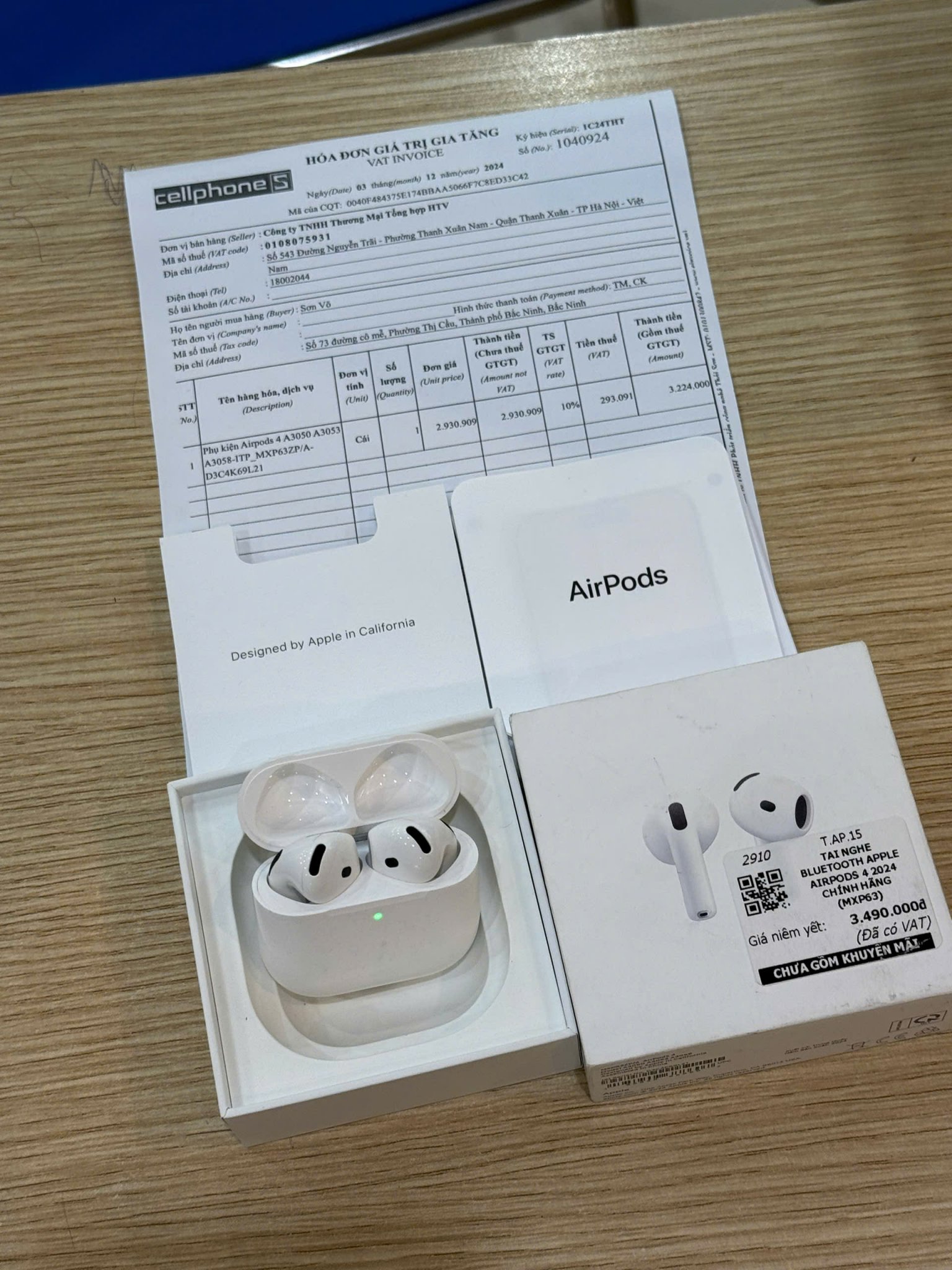 TAI NGHE AIRPODS 4 CHÍNH HÃNG FULLBOX FULL HÓA ĐƠN - Mua Cellphones còn bảo hành 13.12.2025 - Fullbo
