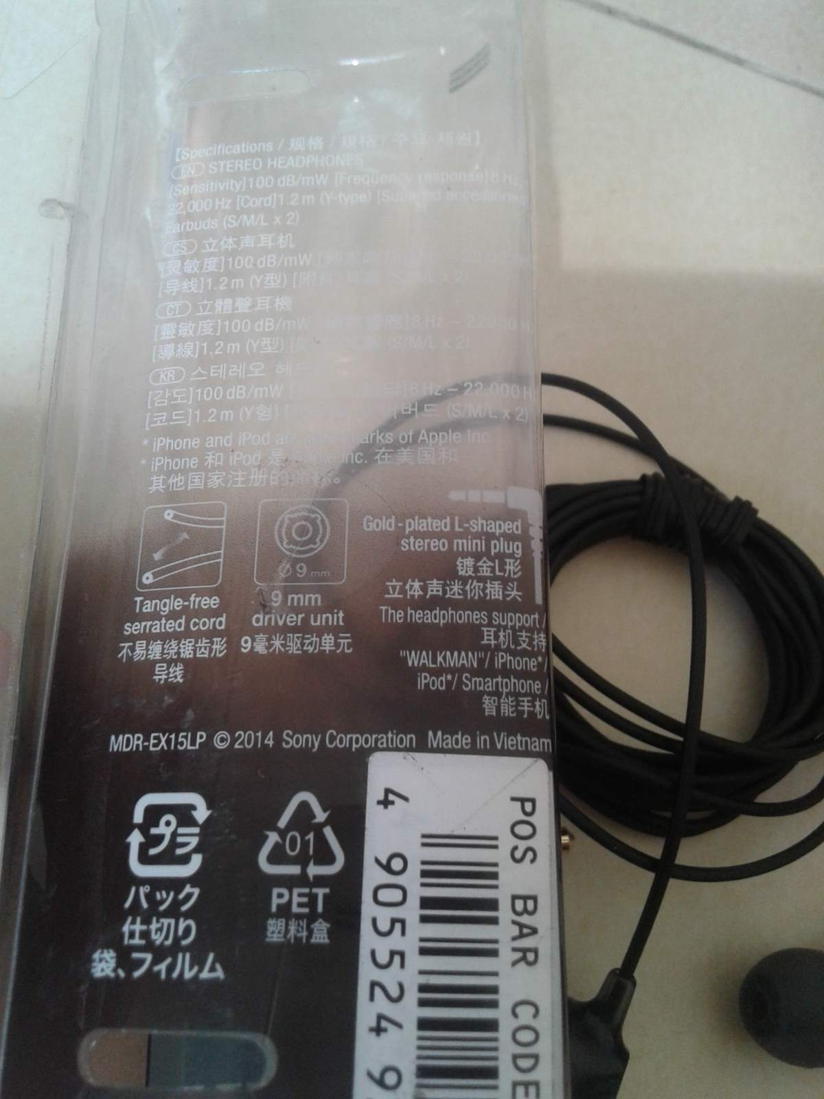 Tai nghe Sony MDR-EX15LP.
