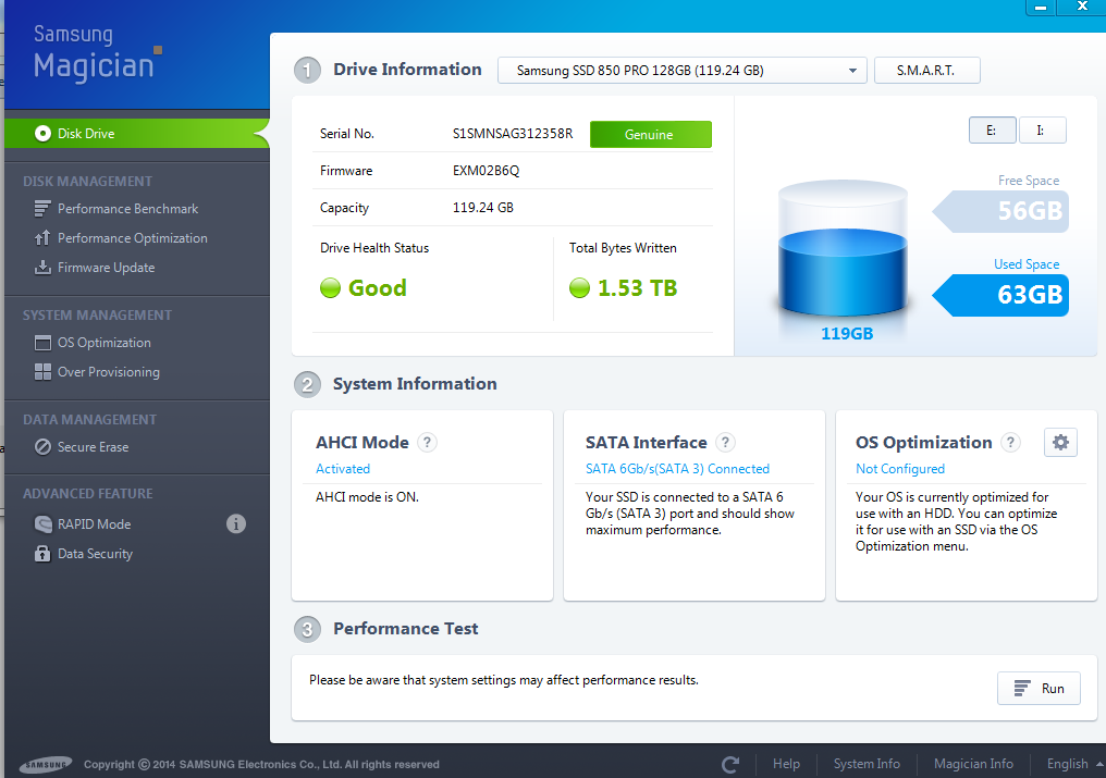 2: SSD samsung 850 pro dung lượng 128 Gb.Bảo hành 10 năm,Check bằng samsung magician chống hàng giả