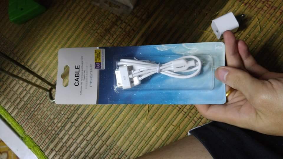 3. Dây 3 đầu ( lightning, androi , ip4 ) pisen chính hãng nguyên hộp 70k