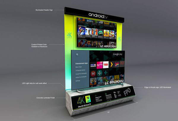 Mẫu thiết kế đảo tivi của siêu thị, showroom Đơn giá thiết kế :XXXvnđ /1m2 Đơn giá thi công : XXX vnd/ 1 m2 diện tích sàn. Giá thi công tùy vào diện tích, ý tưởng ,chất liệu cũng như kiểu cách mong muốn của khách hàng Công ty Nội thất Tùng hân nhận thiết kế và thi công gian hàng triển lãm, hội chợ, showroom, tiểu cảnh sân vườn. Chúng tôi rất hân hạnh được phục vụ quý khách hàng.