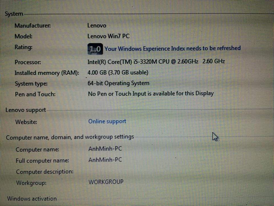 CPU Intel Core i5-3320M Processor 2.6 Ghz (3Mb Cache, Tubo 3.5 Ghz)