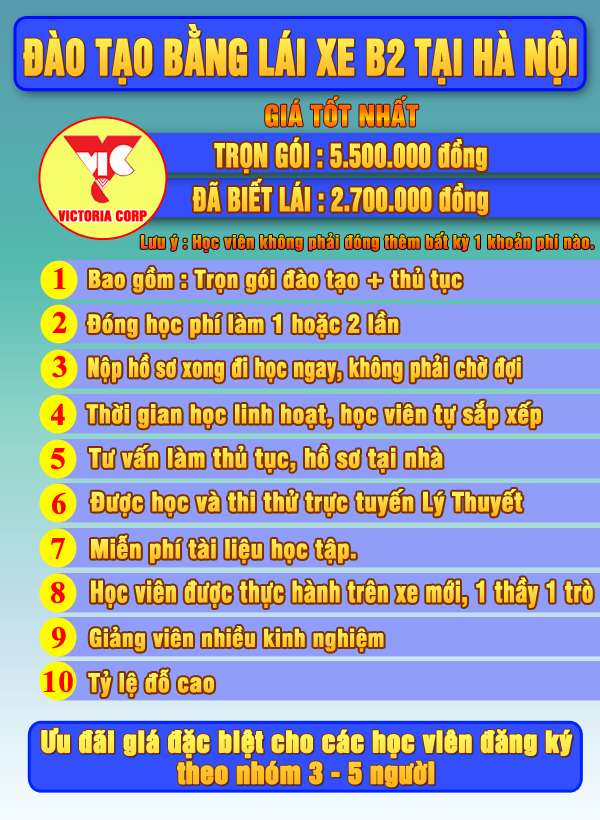 - Bạn đến trực tiếp văn phòng trung tâm dạy nghề dào tạo lái xe VICTORIA