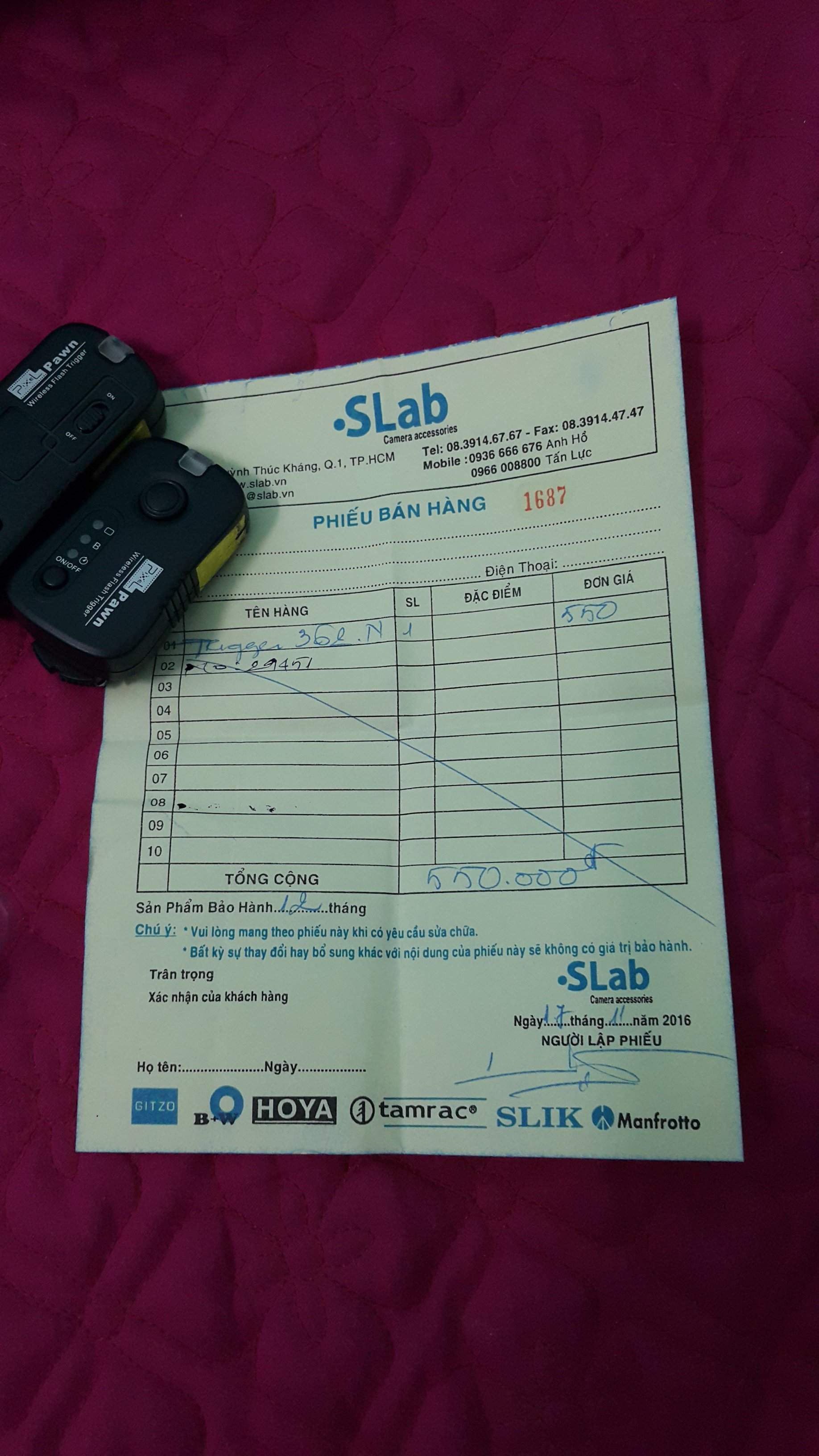 Trigger TF 362 mua ở khánh long. Mua về để đó k có xài tới. Mới chụp thử 1 lần đến giờ bỏ tủ. Ae nào cần mình để lại cho. Giấy bảo hành tới tháng 11/ 2017