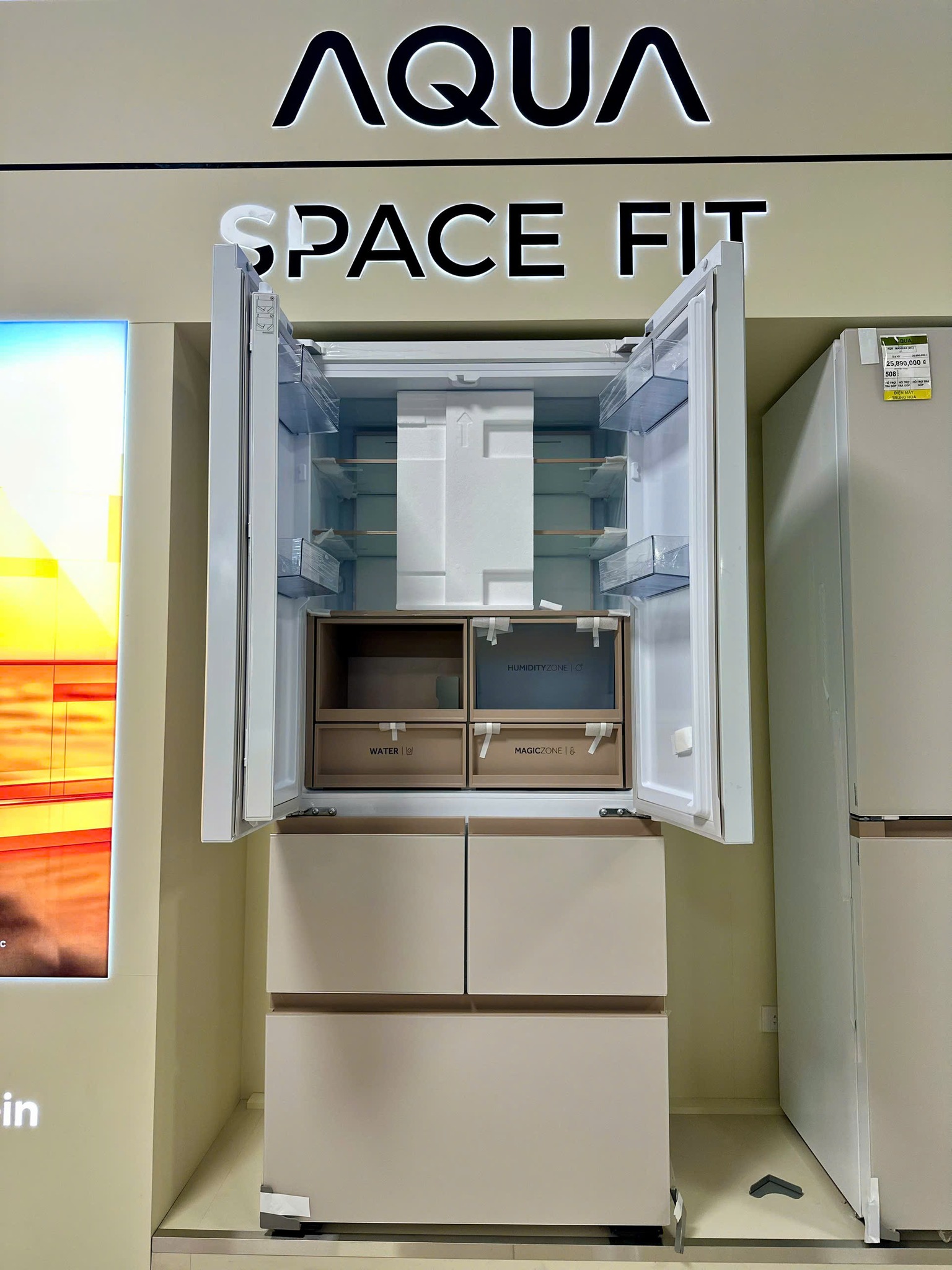 Tủ lạnh Aqua Multi doors dung tích 512 lít, mặt gương nhám trắng kem sang trọng, hiện đại