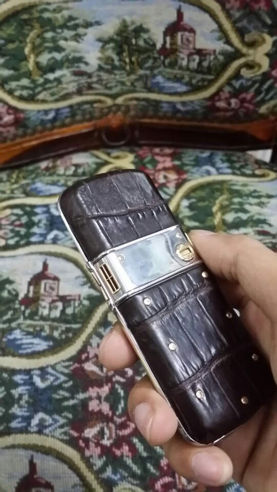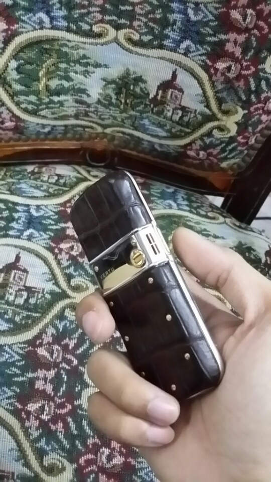 Vertu Constellation C điểm vàng Da cá sấu màu nâu đặc biệt