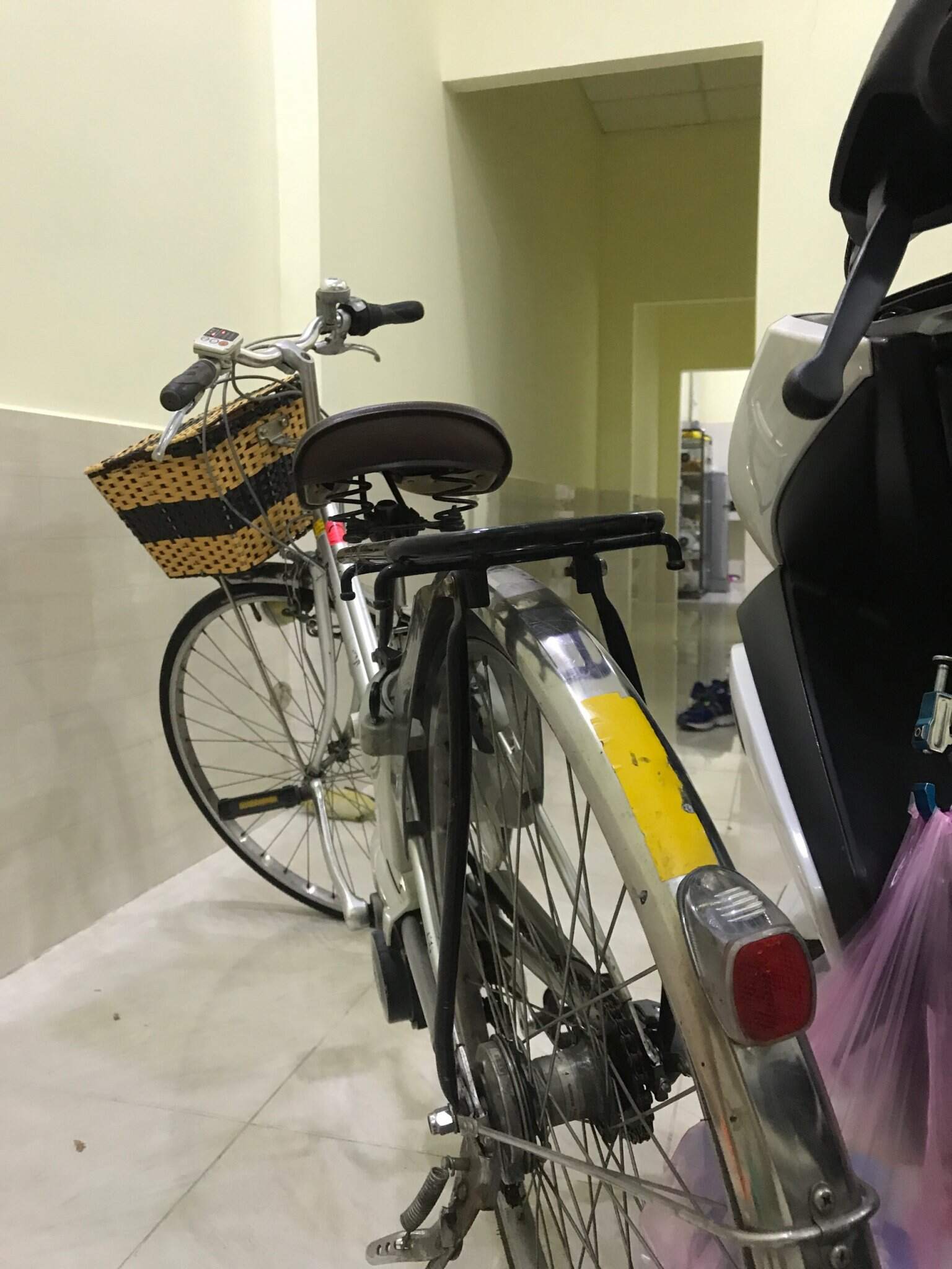 Xe còn đầy đủ tem và các chứng chỉ về an toàn, bảo vệ môi trường,... của Nhật. Đạp xe Nhật tối về xem phim Nhật + cốc bia thì còn gì bằng!
