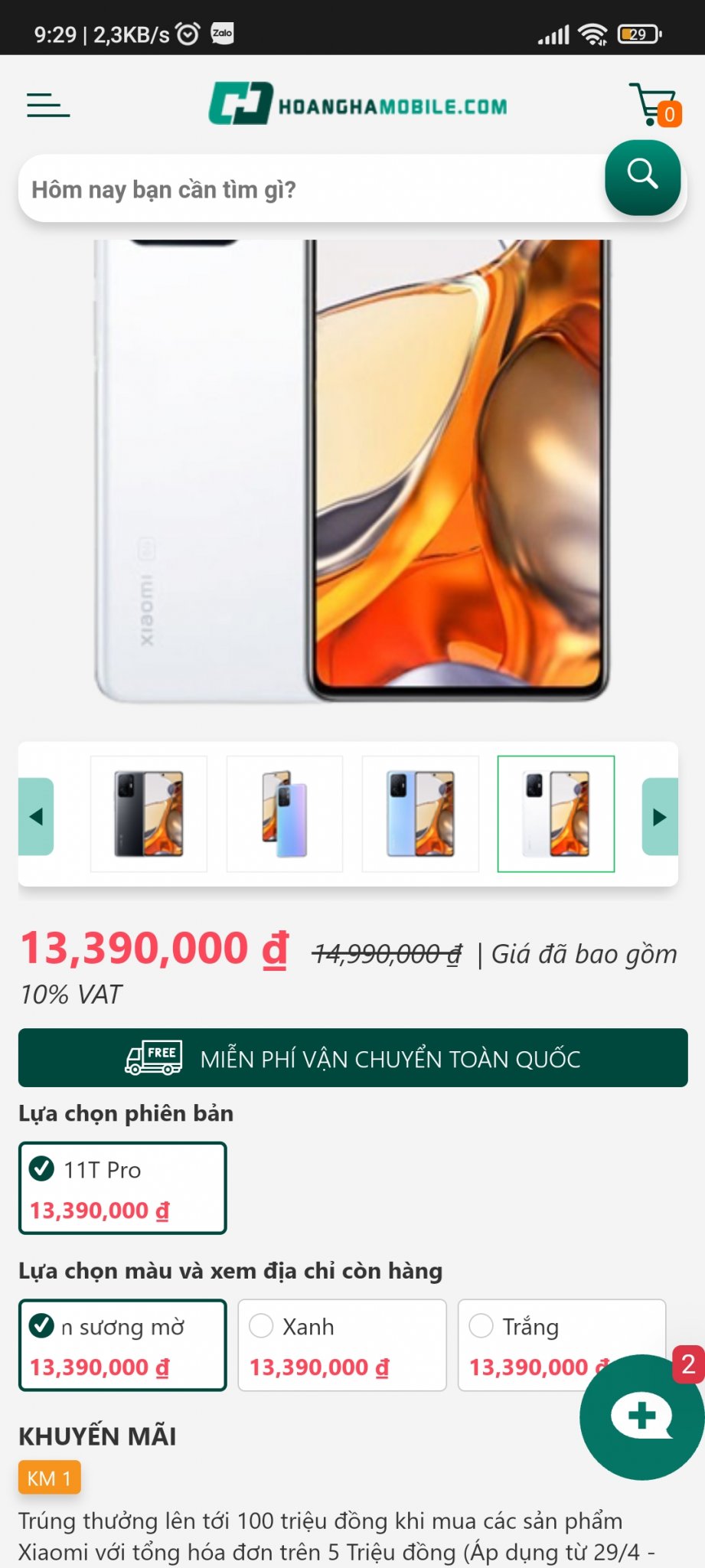 Xiaomi 11T Pro bảo hành 23 tháng chính hãng