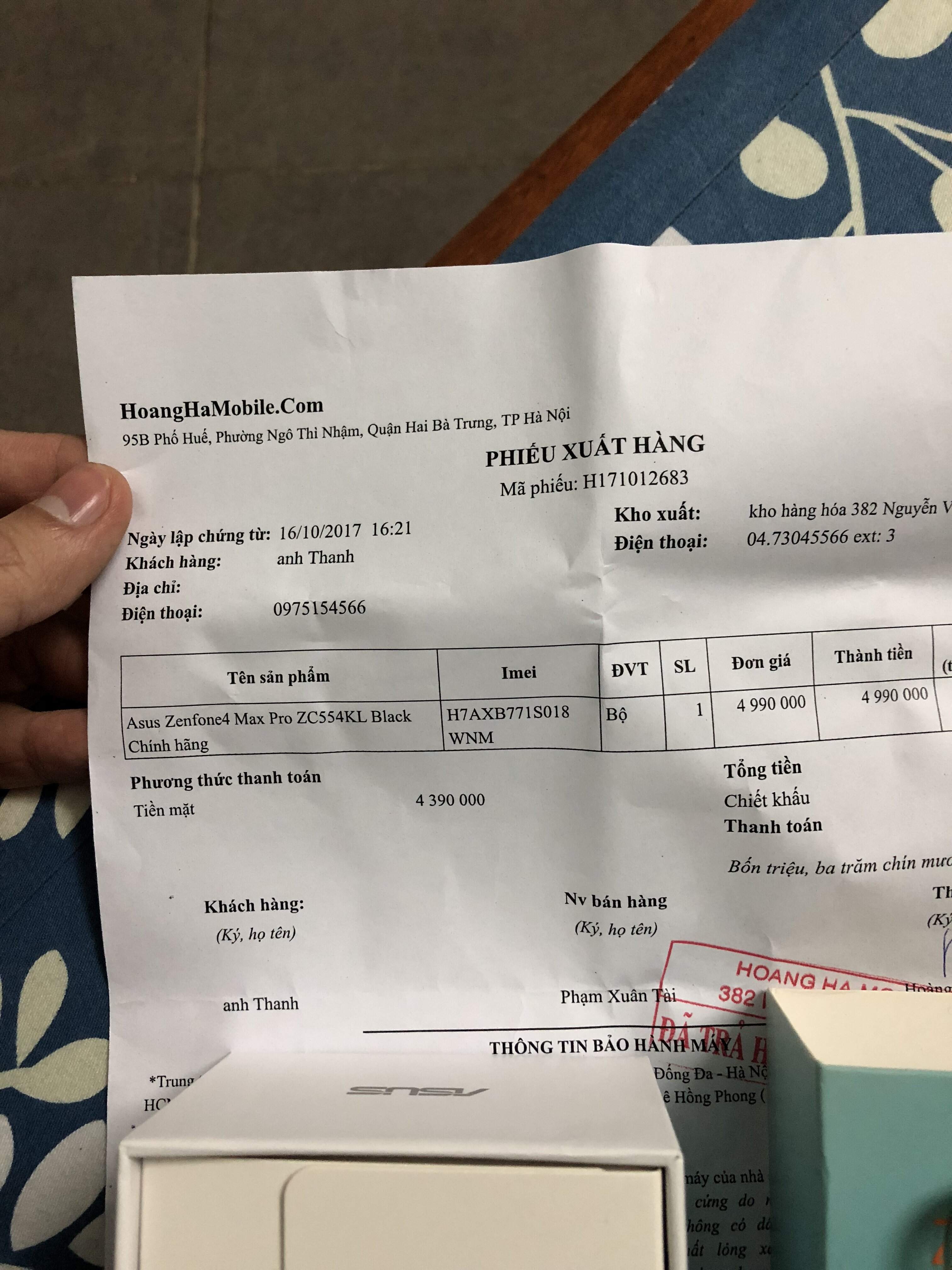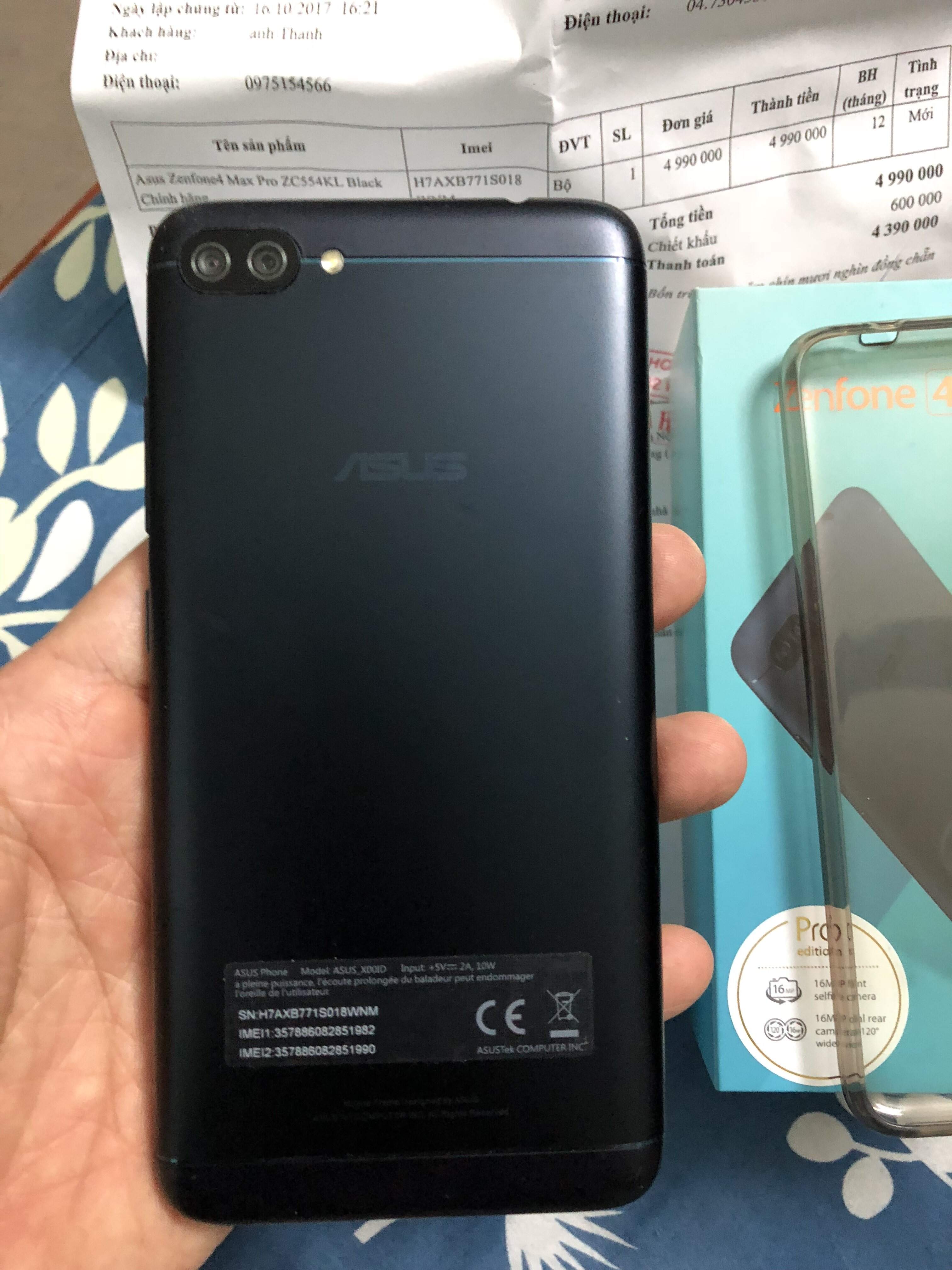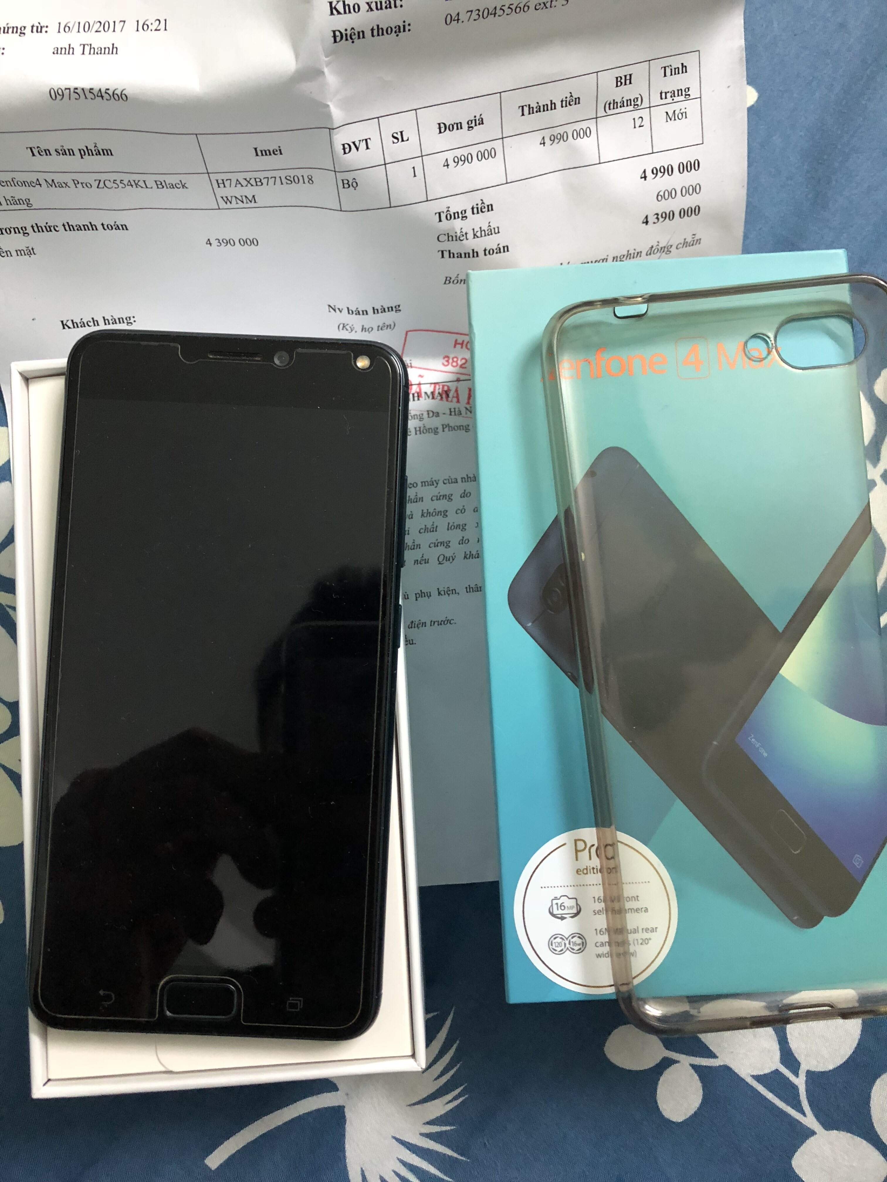 Mình đang cần bán zen 4 max pro, máy mua Hoàng Hà, còn bảo hành đến XXX. Full box cả hoá đơn chính chủ đúng sđt. Máy màu đen,k 1 vết xước!